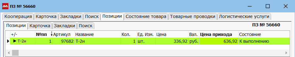 После привязки услуг в «Позициях» вы сможете увидеть «Цену прихода», то есть цену товара с учетом привязанных услуг. «Цена прихода» считается, исходя из удельного веса цены товара.