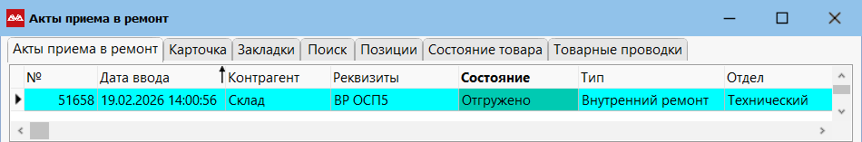 Система попросит подтвердить серийный номер. После выполнения этого движения товар будет списан со склада. Акт перейдет в состояние «Отгружено».