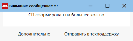 Если при попытке уменьшить количество система выводит сообщение «СП сформирован на большее кол-во»,