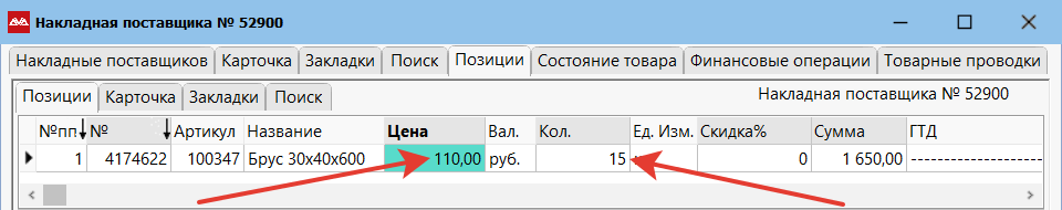 и проставляем цены и количество. Для этого в позициях накладной можно включить режим редактирования в списке и указывать цифры прямо в списке.