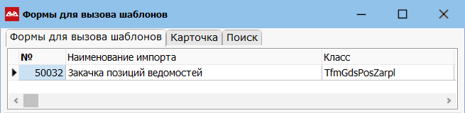 В открывшейся форме выбираем шаблон загрузки №50032 «Закачка позиций ведомостей».