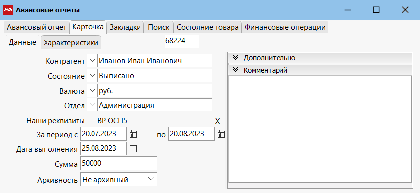 был указан период — укажите его в поле «За период с … по …», «Дата выполнения» — до этой даты сотрудник должен отчитаться за деньги.